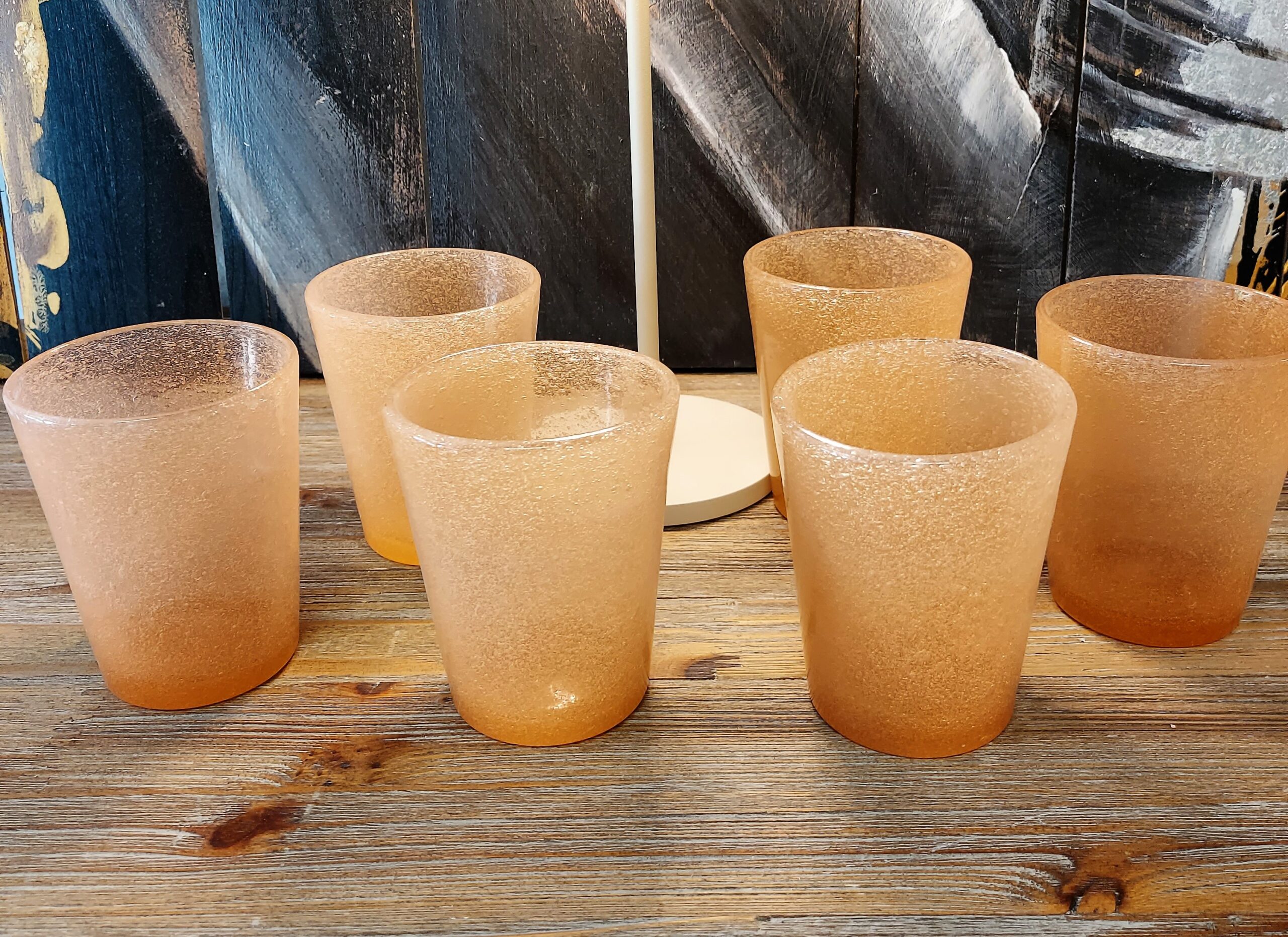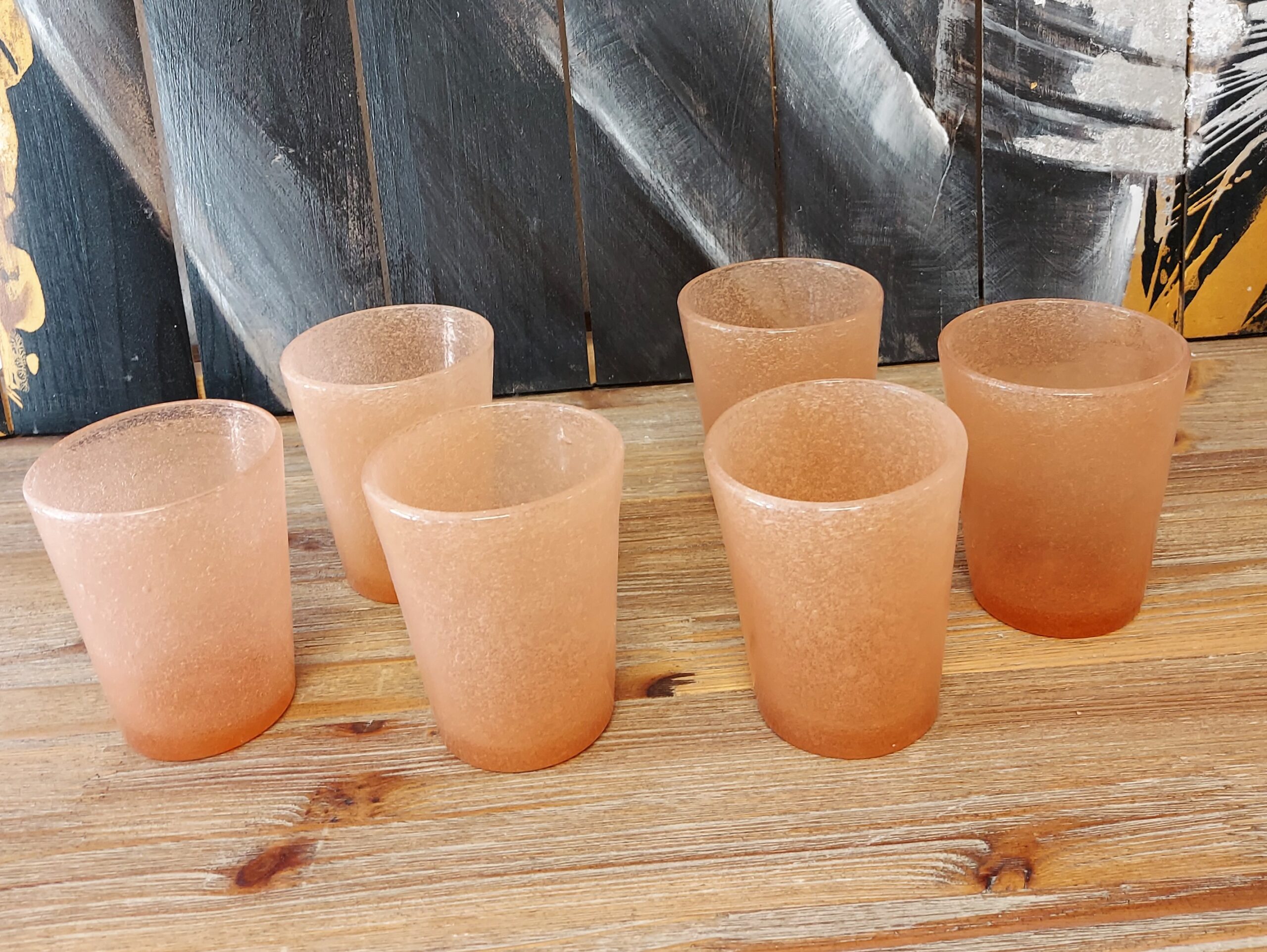 SET DI 6 BICCHIERI IN PASTA DI VETRO COLORATA COLORE ROSA FORMA TUMBLER H. 10 CM. MODELLO SMARTIES BRAND ONLYLUX PARMA